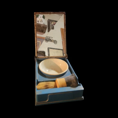 Vtg Folding Metal Tin Shaving Set Kit Horse Brush Western Ever Ready Celluloid📦