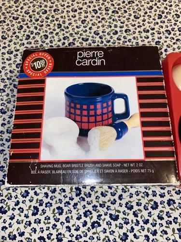 NOS 1993 Pierre Cardin Men’s Shaving Gift Set Mug Brush Soap