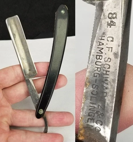 RARE straight edge razor vintage "C.F. Schwartz & Co" manganese steel Solingen