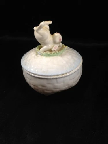 Genuine Fine Bone China Easter Trinket Box Playfull Rabbit