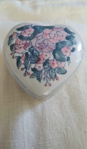 Heart-Shaped Porcelain Trinket Box Pink Floral Design