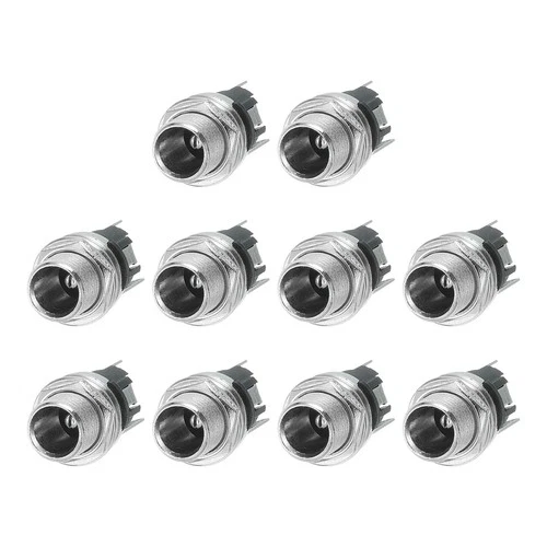 10pcs DC5521 Power Jack 30V 0.5A 10.8x10.8x24.3mm 3 Pins with Nut Washer Silver