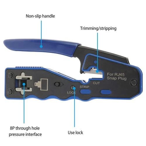 Blue RJ45 Pass Through PRO HD Crimping Tool Crimper Cat 5 5e 6 7 Connector LAN