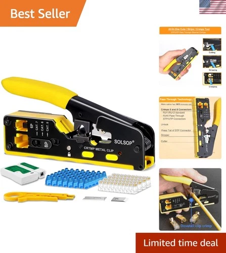 RJ45 pass through Crimping Tool Kit, Tester, Wire Stripper, 20 Cat6 Connectors