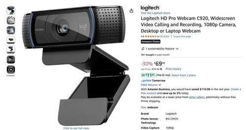 Logitech HD Pro Webcam C920, Widescreen Video Calling and Recording, 1080p