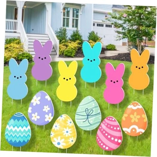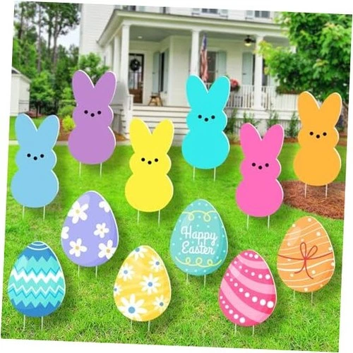 12 PCS Easter Yard Signs Decorations Outdoor - Colorful Cute Easter Pastel