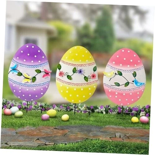 Easter Decorations Outdoor,3 Pack Metal Yard Stake Signs for Outside,Cute Egg