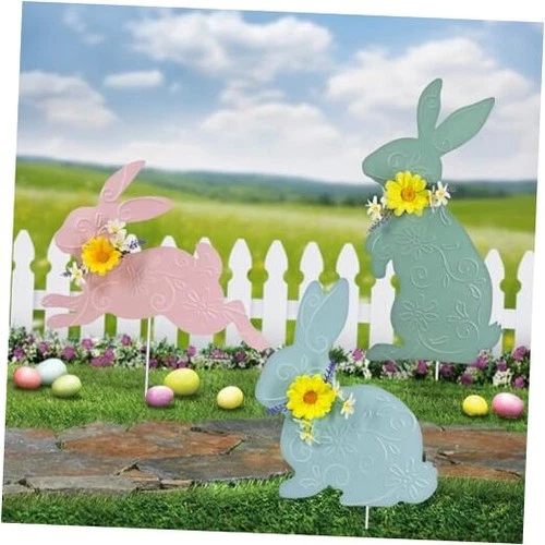 Easter Decorations Outdoor,3 Pack Metal Yard Sign Stakes for Bunny