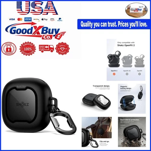 Shockproof Magnetic Case for Shokz OpenFit 2 Earbuds Black with Carabiner & C...