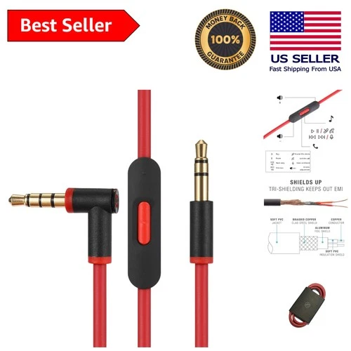 Replacement 1.4m Audio Cable with In-Line Mic for Beats Studio & Solo Headphones