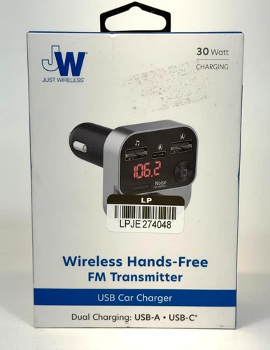 Just Wireless FM Transmitter with USB-C and USB-A Charging Port - Black
