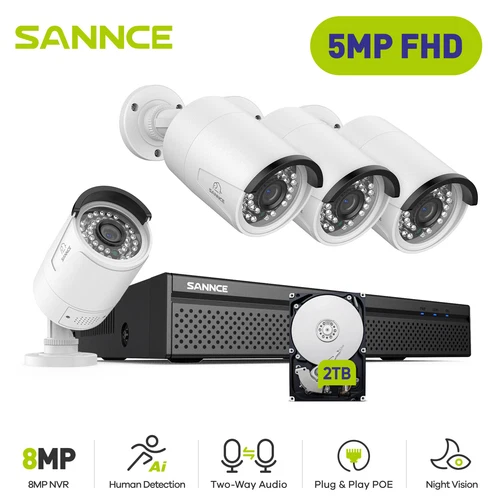 SANNCE 5MP POE Smart Home Security System IP Camera Audio Recording 2TB 10CH NVR