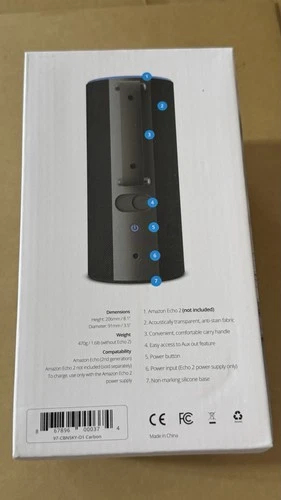 Ninety7 Battery Dock for Amazon Echo 2 Carbon Acoustically Transparent Fabric