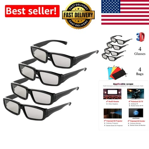Family Pack: 4 Passive Polarized 3D Glasses for Home Theater Enjoyment