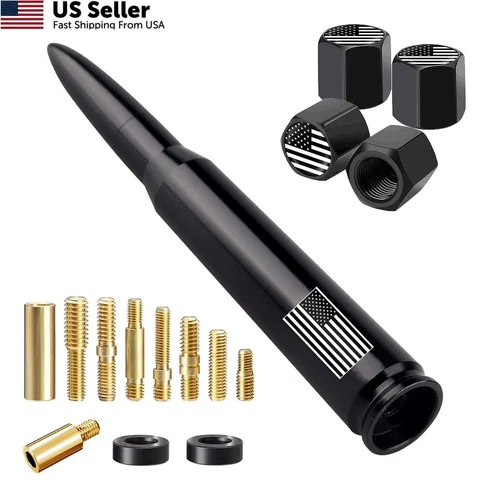 American Flag Car Truck Antenna Mast w Valve Caps Universal Black FROM USA