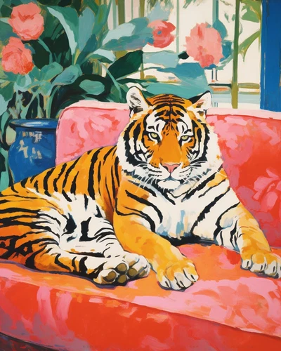 Wild Animal Tiger Laying on Sofa DIY Paint by Numbers for Adults Childlike Innoc