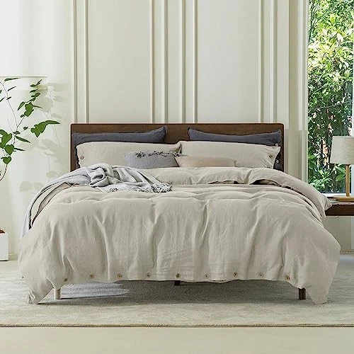 100% Duvet Cover Set 3pcs with Coconut Button Closure California King Linen