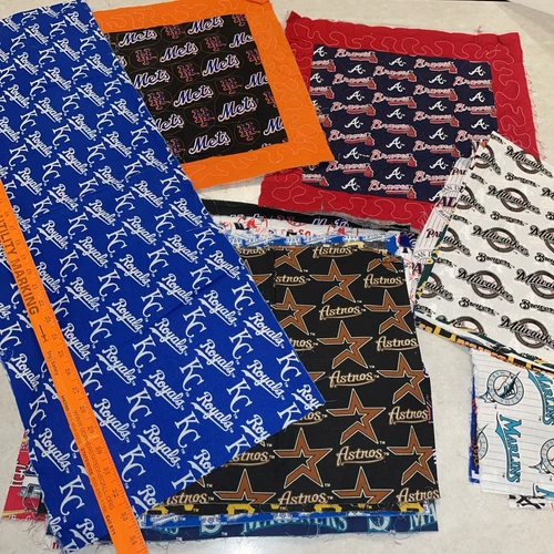 Baseball MLB Fabric (25+) Pc 12x12” (15) pc 33”x12” quilt curtains blanket