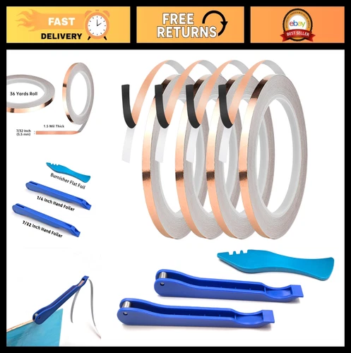 4 Rolls 7/32" Black Copper Foil for Stained Glass + 2 Hand Foilers & 1 Burnisher