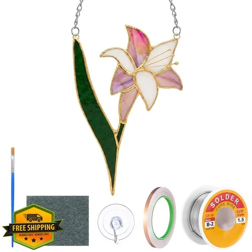 Stained Glass Kit Lily Flower Unfinished Pre Cut Solder Wire Brush