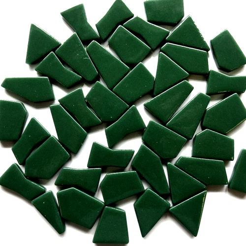 Dark Green Odd Cut Shaped Glass Mosaic Tiles - 25 Tiles - Sizes 3/8 to 1 inch