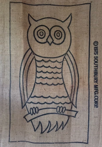 Southbury Mfg OWL Vtg 1975 Punch Needle Embroidery Canvas Rug Wall Art 13"x23"