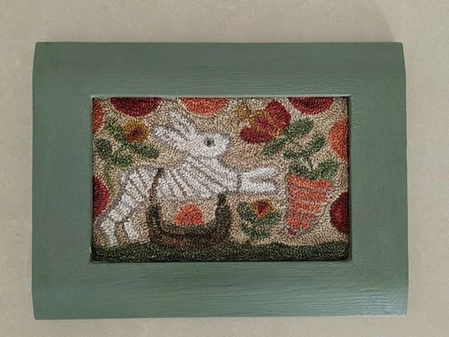 Fraktur Cotton Tail /handmade folk art finished Punch Needle / Easter Bunny