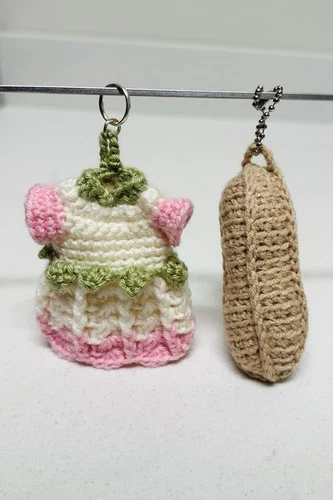 Set of 2 Handmade Crochet Keychain Charms Dress & Peanut Cute Mini