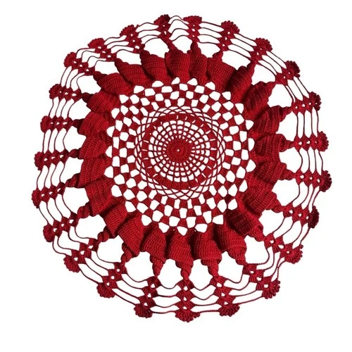 Vintage Handmade Red Crochet Doily 17in