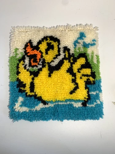 Yellow Duckling in water Throw Pillow wall Hanging Latch Hook 12 x 12 Finished