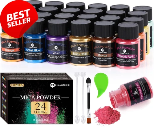 Natural Mica Powder Pigments, 24 Colors, 10g Bottles, for Resin, Soap, Candle...