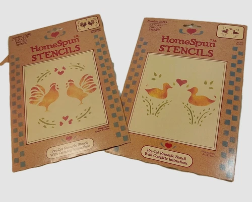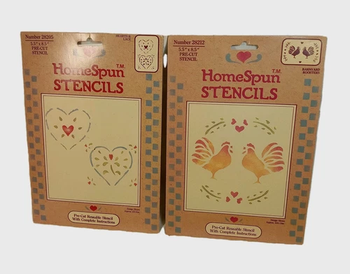 2 ~HOMESPUN STENCILS Size 5.5X8.5" NIP HEARTS & LACE & BARNYARD ROOSTERS PRECUT