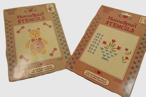 2 ~HOMESPUN STENCILS Size 5.5X8.5" NIP QUILTED BASKET & TEDDY BEAR PRECUT