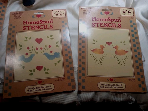 2 HOMESPUN STENCILS ~FOLK ART~POND DUCKS 28215 & LIFE & LOVE 28207 Size 5.5X8.5"