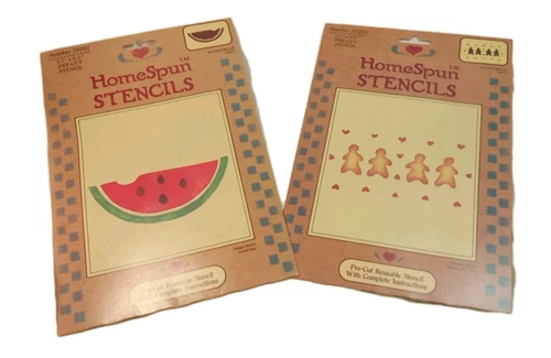 2 ~HOMESPUN STENCILS ~GINGERBREAD BOYS & WATERMELLON SLICE Size 5.5X8.5" NIP