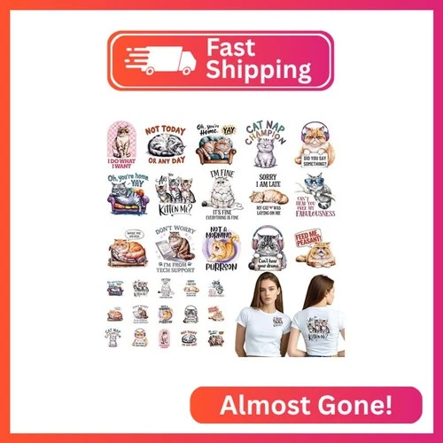 Falueqg Dtf Transfers Ready to Press - 30Pcs Funny Cat Iron on Transfers for Tsh