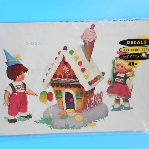 VTG 60s Meyercord Gingerbread House Decals Girl Boy Candy Ice Cream Cone Xmas
