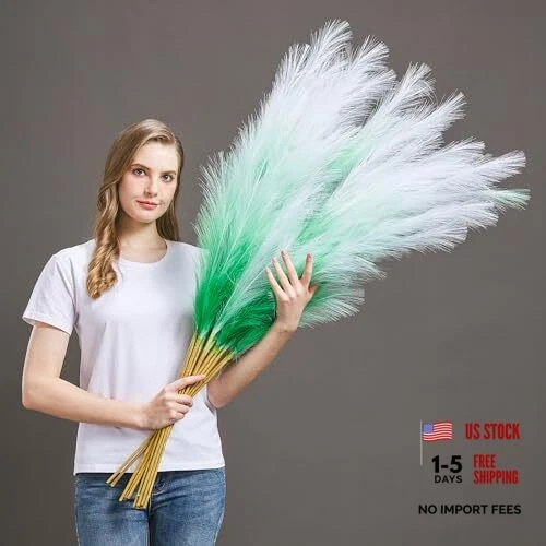 Pcs 45" Faux Pampas Grass – Fluffy Artificial Pompous Grass 7 Green Gradient