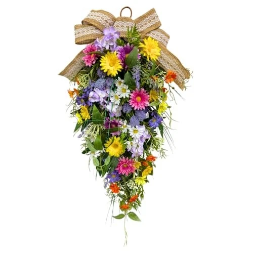 25 Inch Lighted Spring Summer Teardrop Swag with Timer Daisies Wildflower