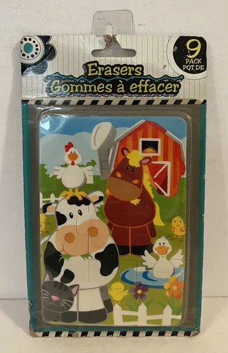 Erasers & Puzzle Barnyard Animals Cow Horse Chicken Duck 9 Pack Gommes A’effacer