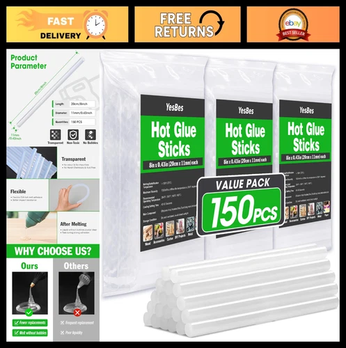 150 PCS Hot Glue Sticks 8" x 0.43" for Glue Gun - Ideal for Wood, Metal, Fabric