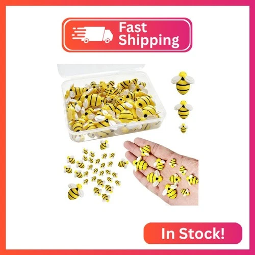 Miukomiu Tiny Resin Bees for Crafts, 50 Pcs Plastic Bumble Bee Decor for DIY Wre