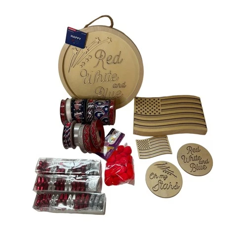 Large Lot of Patriotic 4th of July Wreath Making Supplies DIY Wooden Pcs Flag