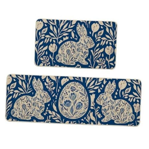 Rabbit Bunny Egg Easter Kitchen Mats Set of 2, 17" x 29" /17" x 47" Blue
