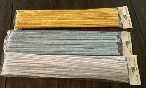 3 Packages Vintage Pipe Cleaners Chenille, Blue Yellow White Crafts Japan NOS