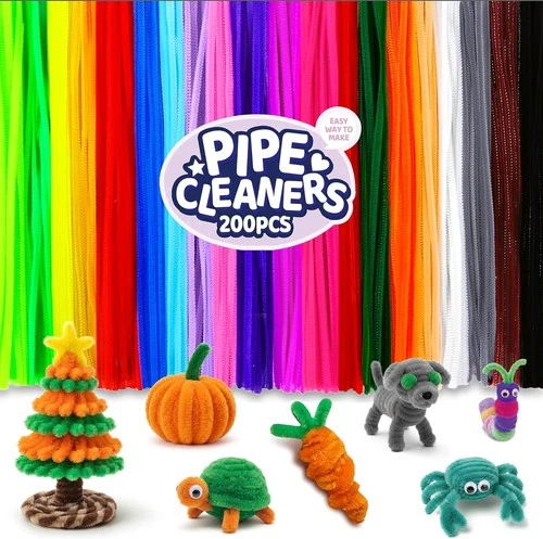 POMBUDS 200 Packs Pipe Cleaner Craft Kit - 20 Colors Chenille Stems (6mm x 12in)
