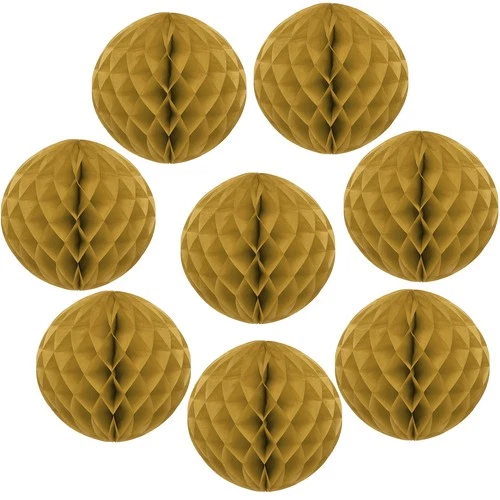 8 Pcs Honeycomb Balls, 8" Dia Honeycomb Flower, Gold