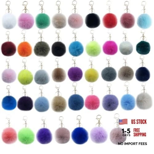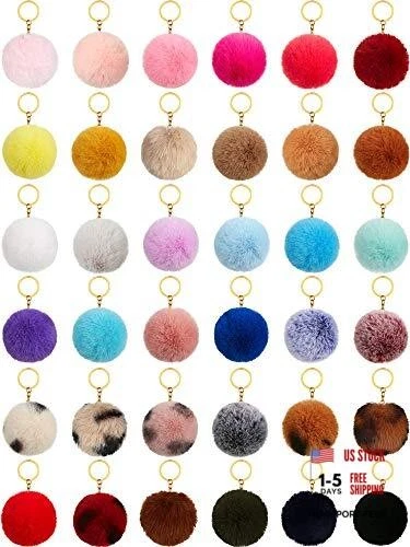 Unpafcxddyig 43 Pieces Pom Pom Keychains Artificial Rabbit Fur Ball 2.36in