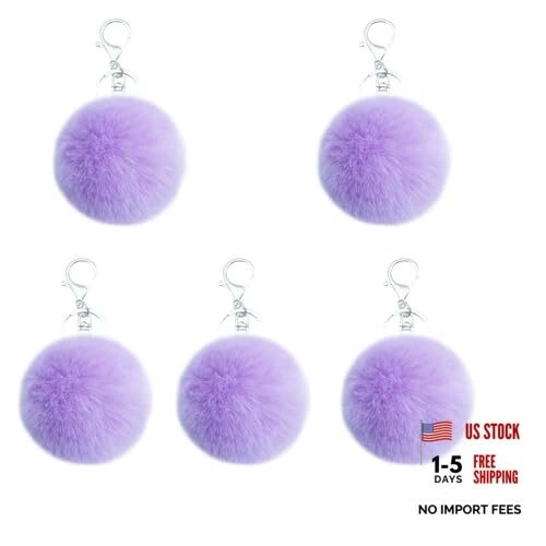 Unpafcxddyig 5 Pieces Poms Keychains Fluffy Ball Faux Fur Pom Pom Light Purple