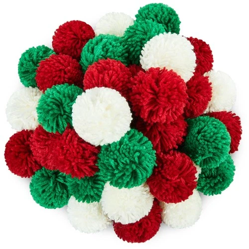 50 PCS 3 Inch Red White Green Yarn Pom Poms Crafts Large Fuzzy Balls Decor